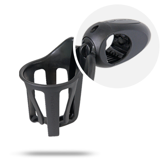 Liquid Holster is made of two parts: bracket (12mm diameter) and basket (35mm diameter), and it attaches to all square or round tubing between 12mm and 35mm (0.39” and 1.3”). It’s made with durable materials and fasteners are of the highest stainless steel quality.